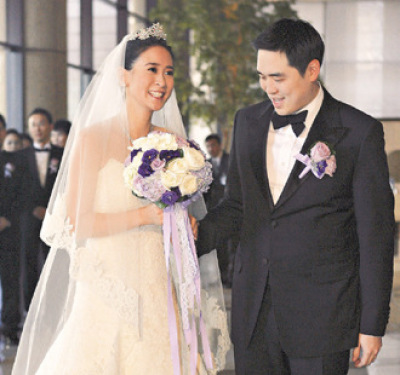 圖為臺塑長孫王泉仁(右)2010年迎娶李晶晶(左)的照片,可惜這樁豪門婚姻變調,雙方都委請律師明天在家事法庭調解。圖片來源:臺灣《聯合晚報》