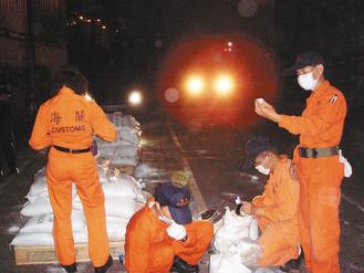 海關工作辛苦,職司關稅稽征、查緝走私,常在碼頭貨柜、堆高機間跑來跑去。圖為海關人員夜間查獲K他命等走私毒品。(圖片來源:臺灣《聯合報》)