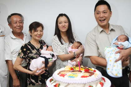 3胞胎父母臉上滿是幸福笑容,但提到近來帶3胞胎的日子,2人異口同聲地說,“就是一個(gè)字‘累’!”(中國臺灣網(wǎng) 焦源源)