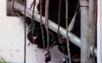 中國臺灣網6月26日消息 據臺灣媒體報道,臺灣動物社會研究會今召開記者會,指控新北市和臺南市2間屠宰場虐待牛,在牛屠宰前用管強插牛胃灌水,借以增加重量,提高販賣價錢。若牛抵抗,動輒以塑料條鞭打牛,甚至將牛頭以繩子綁在欄桿,以鐵絲穿牛鼻固定,讓牛承受巨大疼痛,無法轉頭或休息。