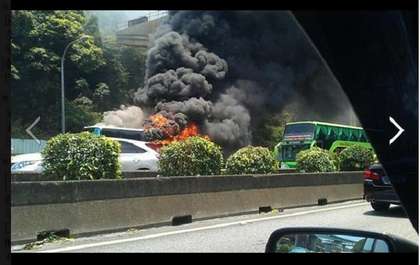 中國臺灣網(wǎng)7月3日消息 據(jù)臺灣“中央社”報道,今天上午11點(diǎn)左右,中山高速公路南下39.6公里處發(fā)生巴士起火意外。一輛巴士的后方引擎室燃燒,事故發(fā)生后10余名乘客下車逃生。新北市消防隊接報后協(xié)助撲滅火勢。