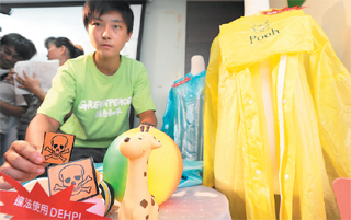 “綠色和平組織”公布兒童玩具抽驗報告,抽驗的充氣球、兒童雨衣、動物造型球類等12項用品中,有6項驗出塑化劑,有1項造型玩具更驗出非法使用塑化劑DEHP。圖片來源:臺灣媒體