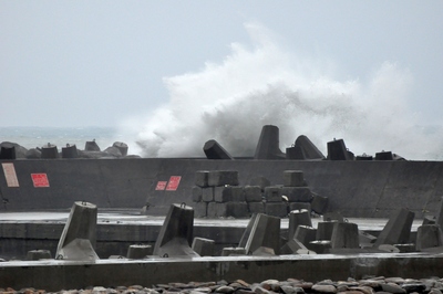 臺風(fēng)“蘇拉”逐漸接近臺灣,宜蘭南方澳堤防31日出現(xiàn)大浪。(圖片來自臺媒)