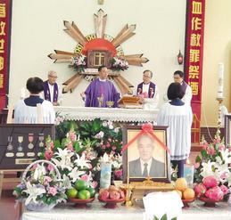 主教座堂神父浦英雄為他主持彌撒,家屬及教友參與圣道禮儀,唱圣歌追思,各界來賓吊祭,場面哀榮,骨灰安厝教會圣山墓園。