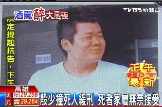 中國(guó)臺(tái)灣網(wǎng)10月26日消息 據(jù)臺(tái)灣TVBS電視臺(tái)報(bào)道,去年中秋節(jié),開法拉利撞死人的殷少爺殷浩中,經(jīng)過1年多審理,法官對(duì)他判處1年徒刑緩刑3年,雙方在9月份以500萬元(新臺(tái)幣,下同)和解。