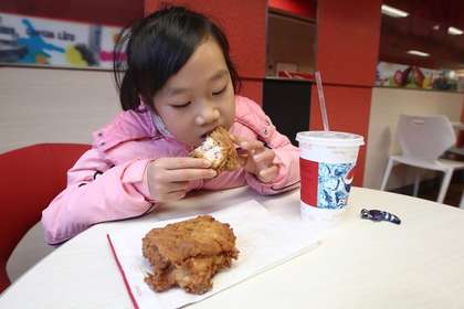 小孩子在吃炸雞,圖非當事人。(圖片來自臺媒)