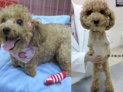 居住新北市的李姓正妹(左)過失導(dǎo)致貴賓犬MOMO(右)前肢重度殘疾,外傳案件已函送檢方審理。(來源:臺灣“今日新聞網(wǎng)”)