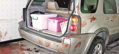 出事的汽車(chē)旅館車(chē)庫(kù)里,顏文興的休旅車(chē)身和地上都是血跡。(圖片來(lái)自臺(tái)媒)