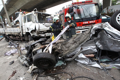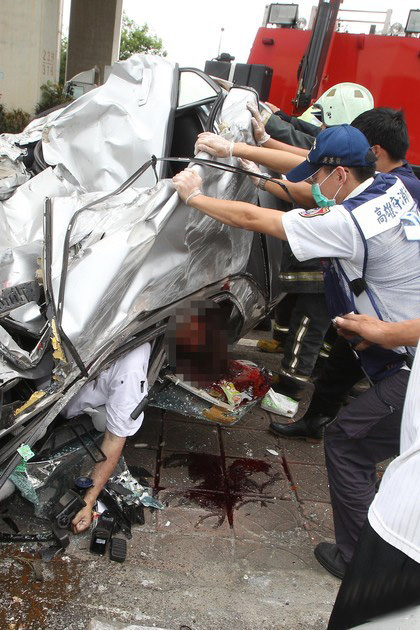 臺灣一對情侶駕車被撞身亡,車體扭曲如麻花(圖片取自臺媒)