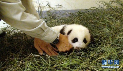 大熊貓保育員幫“圓仔”更換全新“竹葉床”(9月5日攝)。近日,贈(zèng)臺(tái)大熊貓“圓圓”產(chǎn)下的寶寶“圓仔”已滿兩個(gè)月,保育員為“圓仔”更換了全新“竹葉床”,以保證它安穩(wěn)舒適地睡覺(jué)。據(jù)介紹,“圓仔”以前睡的“嬰兒床”由媽媽“圓圓”用自己的食物——竹葉鋪成,“圓圓”和“圓仔”“分床睡”。