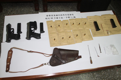 警方查獲的制式90手槍及11發(fā)子彈。(圖片取自臺(tái)媒)