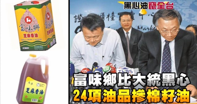 臺灣食用油全面危機,富味鄉(xiāng)比大統(tǒng)黑心。(臺媒圖)