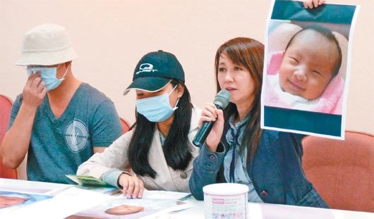 沈媽媽昨在北市議員簡余晏陪同下控訴,女兒緗緗今年八月出生后,因她母乳量不足,購買這款奶粉給女兒喝,一天約喝八次奶。但緗緗九月開始發(fā)燒,十月十五日發(fā)燒抽搐,送國泰醫(yī)院急救,雖一度退燒,但隔天凌晨再因呼吸急促病危,轉(zhuǎn)馬偕醫(yī)院急救。