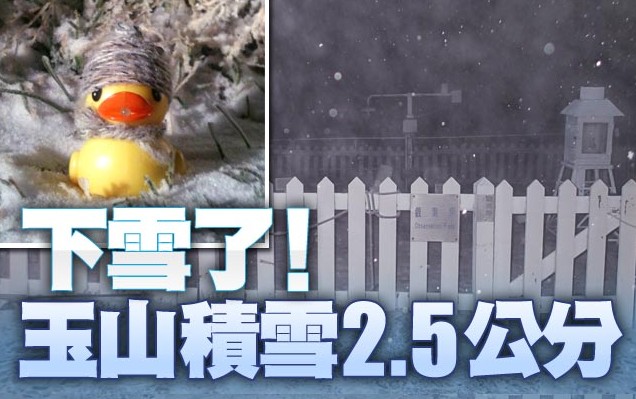 昨晚玉山初學,積雪2.5公分。(臺媒報道圖)