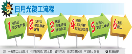 陳金德說,停工是沒期限的,何時復工以日月光的動作而定。若馬上提出改善計劃,審查核可后進行試車,通過連續15次的采樣、監測沒問題,日月光提出復工申請,即可同意復工,一般時程為二至三個月,“日月光若做得好,可以更快復工”。