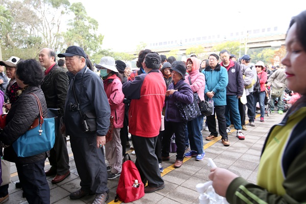 動(dòng)物園門口清晨5、6時(shí)就出現(xiàn)搶看“圓仔”的頭香客,每個(gè)人都是全副武裝,包得緊緊就為了看“圓仔”。截至動(dòng)物園9時(shí)開園前,排隊(duì)人龍已經(jīng)延伸至捷運(yùn)動(dòng)物園站,約有500、600人。