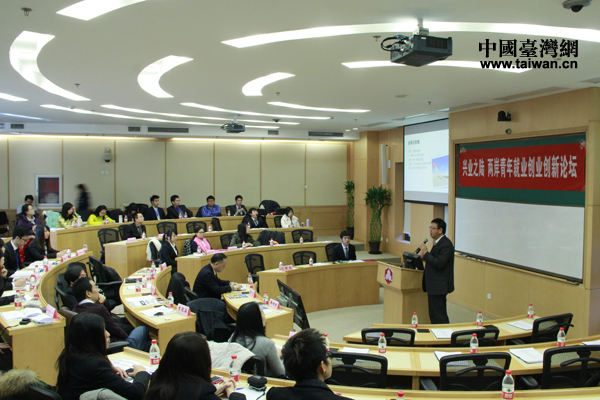中國臺灣網1月21日北京消息 1月21日上午,由清華大學學生海峽兩岸交流協會舉辦的“興業之陸 兩岸青年就業創業創新論壇”在清華大學金融學院舉行。本次論壇主要圍繞兩岸青年共同面對的職業發展問題,結合臺生在陸就業情況等探討兩岸就業創業環境、新興產業發展及青年創新等議題。