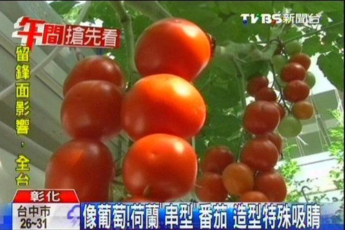 據臺灣TVBS新聞臺報道,臺灣彰化縣溪州鄉有農民引進荷蘭的“珍珠串番茄”品種,外形像葡萄,種出來是一整串的番茄,造型特殊,而且種在溫室里,不怕風吹雨打。