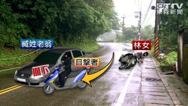 1名高齡91歲的臧姓老翁,3月開(kāi)車(chē)行經(jīng)北宜公路坪林路段時(shí),因?yàn)闆](méi)有和旁邊的機(jī)車(chē)保持安全距離,因此在彎道擦撞到林姓女機(jī)車(chē)騎士,造成對(duì)方當(dāng)場(chǎng)倒地且多處骨折。但老翁撞到人后,似乎渾然不知,不但沒(méi)有下車(chē)查看,還直接揚(yáng)長(zhǎng)而去。盡管李姓目擊者看到后,趕忙追上前去攔車(chē),但仍追不上肇事車(chē)輛。