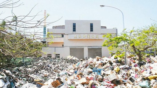 屏東縣琉球鄉的焚化廠閑置多年未用,垃圾全運到屏東處理,因為沒有經費運送,全鄉垃圾從1月開始就沒去處,全堆放在閑置的焚化廠對面空地,已堆積成垃圾山。 圖自臺灣《聯合報》