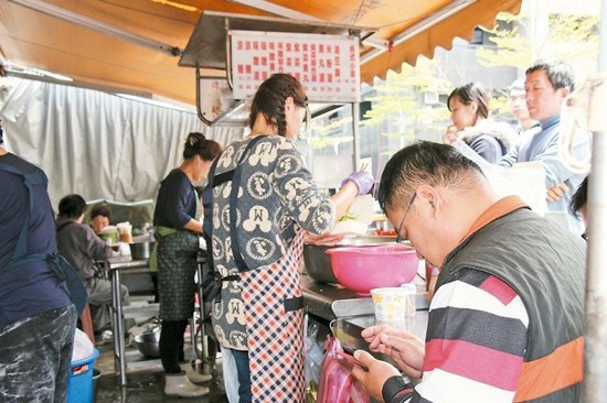 一到假日,客人絡繹不絕,涼州街涼面攤來不及應付,常讓客人一等就20多分鐘。圖自臺灣《聯合晚報》