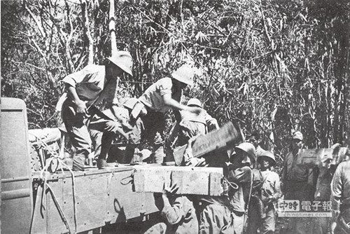 臺(tái)籍戰(zhàn)俘監(jiān)視員與日軍在菲律賓以叢林隱蔽,補(bǔ)給彈藥。當(dāng)時(shí)的臺(tái)籍兵多扮演軍傭角色。(中時(shí)報(bào)系資料照片)