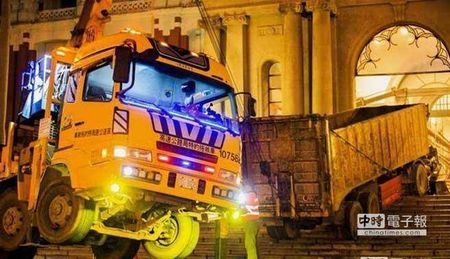 張德正開砂石車沖撞馬英九辦公大樓。(臺灣中國時報系資料照)