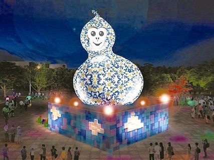 臺(tái)北燈節(jié)日前公布今年主燈造型,號(hào)稱史無前例推出不規(guī)則的光雕主燈“福祿猴”,外觀為“葫蘆”造型,取自傳統(tǒng)文化中葫蘆代表的“福祿”、“多子多孫好福氣”寓意,并將主燈依葫蘆諧音命名為“福祿猴”。主燈表面以氣泡膜作為材料,周圍使用可回收的泡沫塑料,打造臺(tái)北地景藝術(shù)裝置。由空中鳥瞰,就是臺(tái)北市的地圖縮影,希望借由燈節(jié)讓環(huán)保的概念成為生活藝術(shù)。