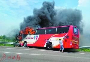 廣州消防部門表示,當乘坐的公交車發生火災時,千萬不要驚慌失措,尋找最近的出路,比如門、窗等,找到出路立即以最快速度離開車廂。