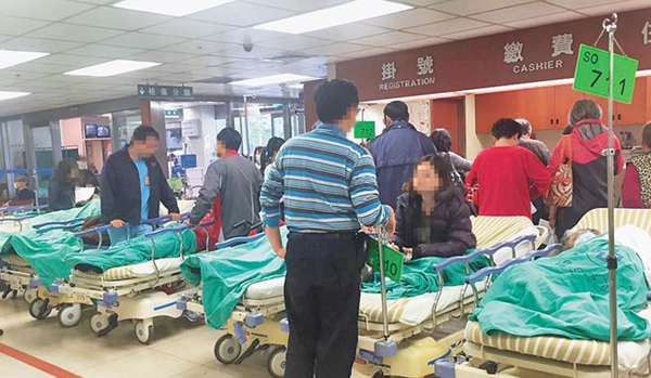 高雄長庚醫院急診室走廊,常躺滿求診病人。圖片來源:臺灣《中時電子報》