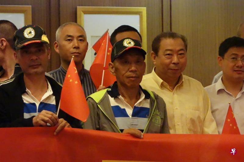 臺灣籍輪機長王沈瑞章(中)在大陸海協會副秘書長王小兵陪同下抵達廣州。