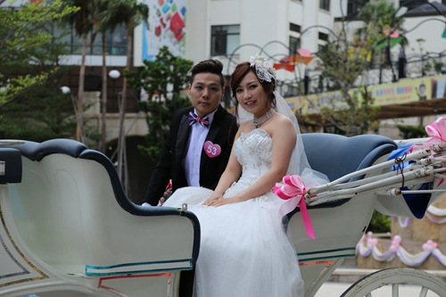 今天新人中的李旨浩與江敏晶,因參加新北市舉辦的未婚聯(lián)誼而結(jié)緣,2人交往過(guò)程中都在準(zhǔn)備考試,長(zhǎng)時(shí)間待在圖書(shū)館感情升溫快,在考試結(jié)束后,便決定結(jié)婚。今天英倫風(fēng)婚禮,現(xiàn)場(chǎng)特別租用3輛白色馬車,讓新人搭馬車進(jìn)場(chǎng)走紅地毯,還有新人穿蘇格蘭裙,在臺(tái)灣婚禮服裝可說(shuō)相當(dāng)少見(jiàn)。婚禮還由朱立倫抽出2對(duì)新人,贈(zèng)送英國(guó)倫敦來(lái)回機(jī)票做賀禮。(記者魏翊庭)