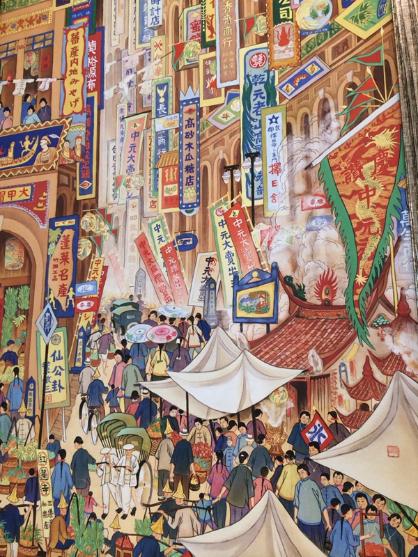 臺灣畫家郭雪湖的《南街殷賑》以夸張的藝術手法反映了1930年代迪化街的繁華。 圖片來源 互聯網