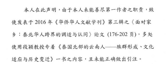 前些天,復(fù)旦大學(xué)2013級博士仇思雋論文嚴(yán)重抄襲一事引發(fā)輿論關(guān)注,一波未平一波又起,1月23日,中山大學(xué)人類學(xué)系副教授段穎在微信公號“中國人民大學(xué)人類學(xué)研究所”上發(fā)文,曝光《華僑華人文獻(xiàn)學(xué)刊》(第三輯)中《面對家鄉(xiāng):泰北華人跨界的調(diào)適與認(rèn)同》一文嚴(yán)重抄襲自己的著作《泰國北部的云南人——族群形成、文化適應(yīng)與歷史變遷》(社會科學(xué)文獻(xiàn)出版社,2012)。