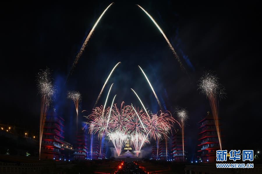 2017年1月29日 臺灣佛光山春節平安燈會開幕 這是1月28日拍攝的佛光山大型煙火表演。新華社記者 歐東衢 攝