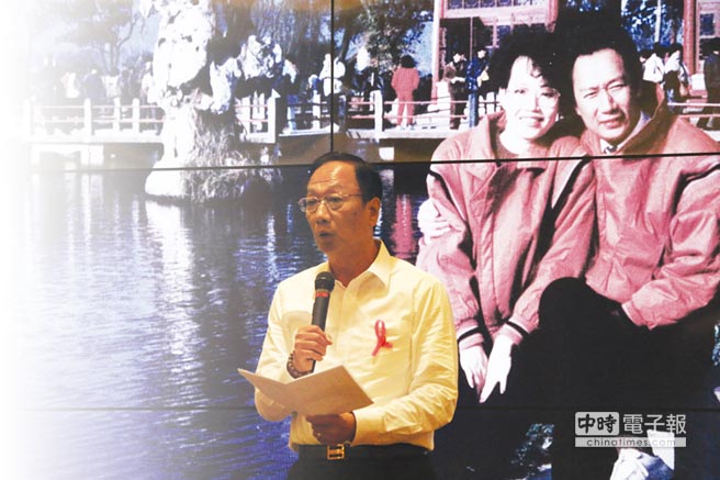 悼亡妻林淑如,昨日郭臺銘還特別出示和亡妻同穿情侶裝、在西湖補度蜜月時的合照。圖片來源:臺灣中時電子報
