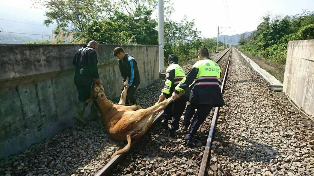 火車撞牛已不是新聞,但一次撞到6只,堪稱史上最多!事故發生后臺東縣警局關山警察分局獲報,隨即由鹿野派出所副所長周平和率5位員警前往,協助臺鐵人員“抬牛”,清空軌道,讓火車順利通行;4621車次區間車12名旅客換乘301次自強號在10時37分返回臺東車站。