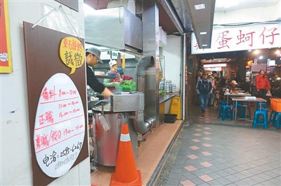 延三夜市所在路段長約1公里,雖然面積不大,老店卻不少,葉家五香雞卷、旗魚米粉、大腸煎、紅燒鰻、海鮮粥等,都是老饕最愛,常見排隊人潮。過年后,延三夜市卻面臨“用工荒”,處處張貼招人公告,豆花、牛排、海鮮粥、蚵仔煎等業者都在征人,部分店鋪甚至招人近1個月,卻依舊乏人應征。