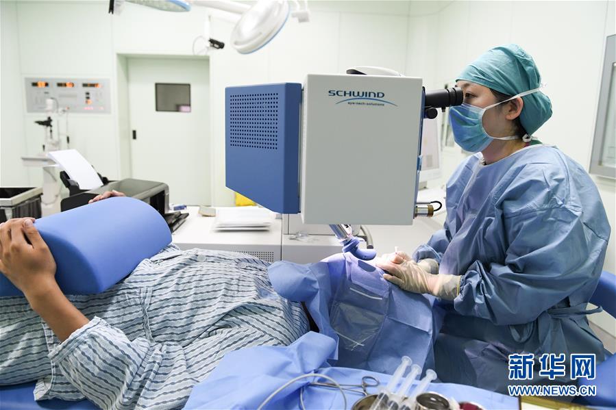 在北京大學國際醫院,潘中婷(右)在為患者做矯正近視手術(6月8日攝)。 破曉,是臺灣眼科醫生潘中婷最喜歡的瞬間。那年,已在大陸讀書六年的她初登泰山,從黃昏爬到日落住宿,凌晨四五點租了軍大衣到山頂看日出。經歷了漫長的等待后,當看到太陽從澄凈的蒼穹下噴薄而出,周圍錯落起伏的山脈在薄薄的曙色風霧中染上金光,潘中婷頓時被這黑暗之后的光明打動了。她想起了中學課本中荀子的一句話:“固不登高山,不知天之高也;不臨深溪,不知地之厚也”。那時的潘中婷,正在眼科這座“學而無涯”的高山上攀登。2003年,她考入北京大學醫學部臨床醫學本科,2008年進入北京大學人民醫院眼科就讀碩博,潘中婷深以自己的職業而自豪。畢業后,由于臺灣迄今不承認大陸的醫事學歷,潘中婷選擇在大陸開始自己的杏林生涯。(新華社記者 陳曄華 攝)