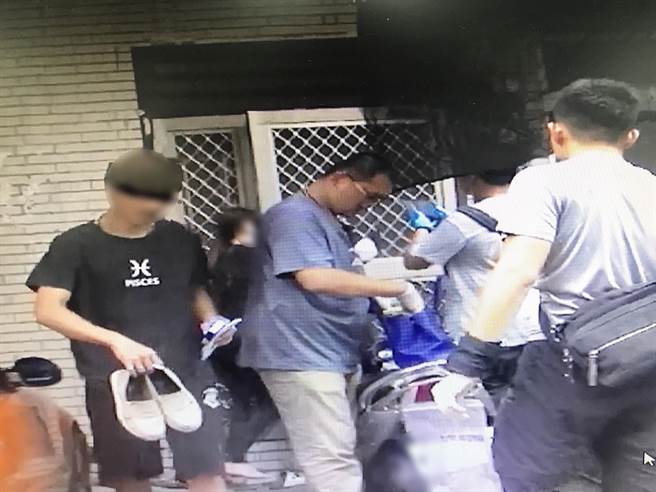 黃女(左二)躲在一旁,懷孕3個月被查獲吸毒。(圖片來源:臺灣“中時電子報”)