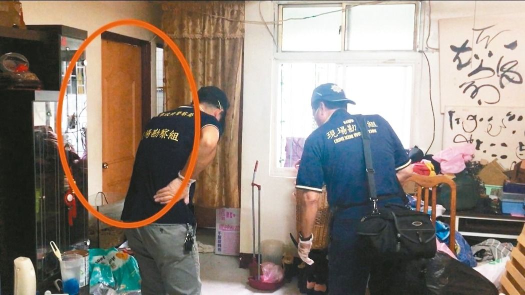 林女將一歲半的男嬰放在另外一間房間(紅圈處),男童疑死亡2天,發出尸臭,警方到場采證。(圖片來源:臺灣《聯合報》)