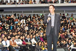 鴻海集團總裁郭臺銘14日在逢甲大學演講暢談企業及兩岸等議題,吸引數千名學生到場聽講。(圖片來源:臺灣《中國時報》)