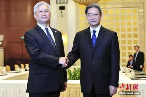 10月14日,張志軍與夏立言在廣州會面。中新社記者 陳驥旻 攝
