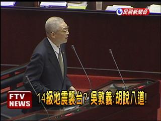 吳敦義駁斥臺灣將發(fā)生地震謠言。圖片來源:臺灣民視新聞臺
