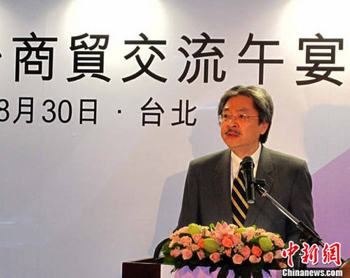 香港“港臺經(jīng)濟文化合作協(xié)進會”榮譽主席、財政司司長曾俊華30日在臺北出席港臺商貿(mào)交流午宴上致辭表示,香港和臺灣要互相借助彼此的優(yōu)勢,以達到優(yōu)勢互補,在合作互動中制造更多商機。中新社發(fā) 路梅 攝