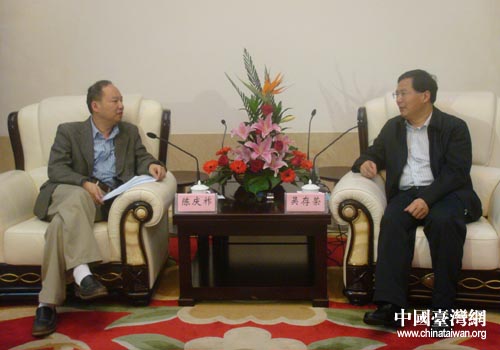 中國臺灣網4月25日合肥消息 日前,安徽省委常委、市委書記吳存榮在市政務中心會見康師傅控股有限公司總經理陳慶祚先生一行。副市長吳建國、市委副秘書長柴修發、市臺辦主任徐延安、副主任丁素光及市直有關部門負責人等參加會見。康師傅飲品控股有限公司協理何孟偉、康師傅控股有限公司經理王安平等會見時在座。