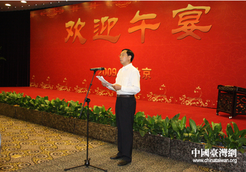 農(nóng)業(yè)部總經(jīng)濟師陳萌山在午宴上致辭,對遠道而來的臺灣中部四縣市朋友表示歡迎。(中國臺灣網(wǎng) 焦瑩瑩 攝)