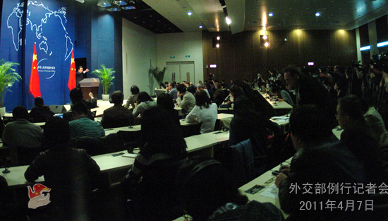 2011年4月7日,外交部發(fā)言人洪磊主持例行記者會(huì)。