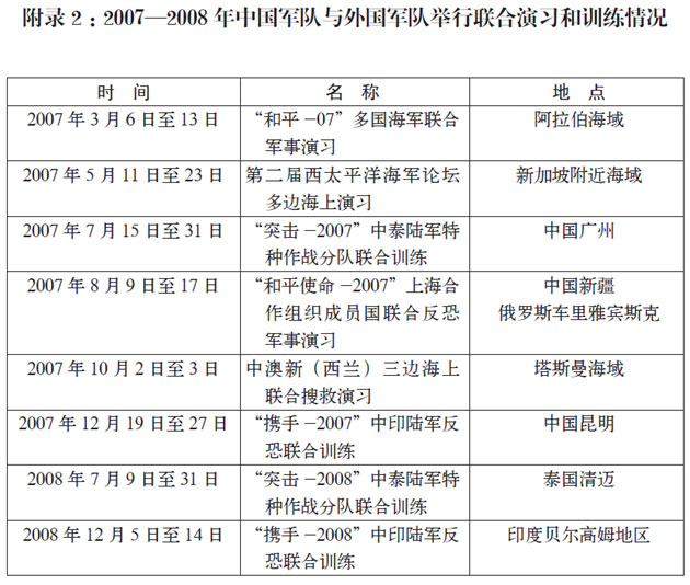 附錄2:2007—2008年中國軍隊與外國軍隊舉行聯合演習和訓練情況