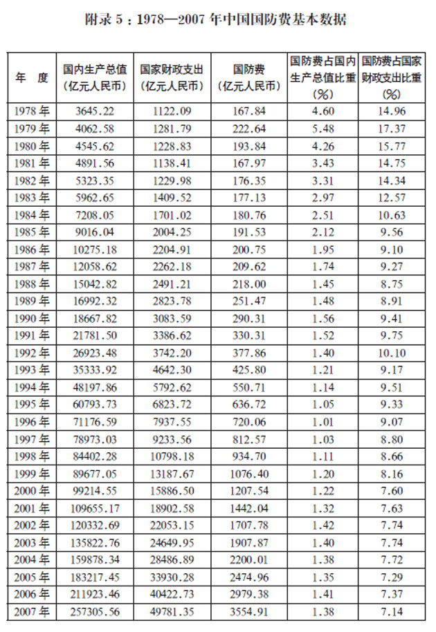 附錄5:1978—2007年中國國防費基本數據